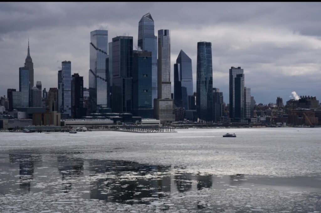 1 of 2 | Hielo flota sobre el río Hudson frente a los edificios de la ciudad de Nueva York, el lunes 26 de enero de 2026, en una toma desde Weehawken, Nueva Jersey. (AP Foto/Seth Wenig)