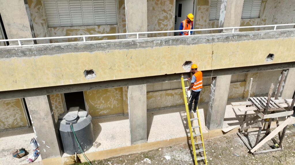 En los recorridos encabezados por el Viceministro Francisco D’Óleo y el director de Infraestructura Escolar, Roberto Herrera, tras visitar el centro Los Balbi de 28 aulas en el sector La Madeja en San Francisco de Macorís, se dispuso la reanudación de los trabajos dentro del Plan 24/7 para acelerar su terminación tras 12 años paralizados.
