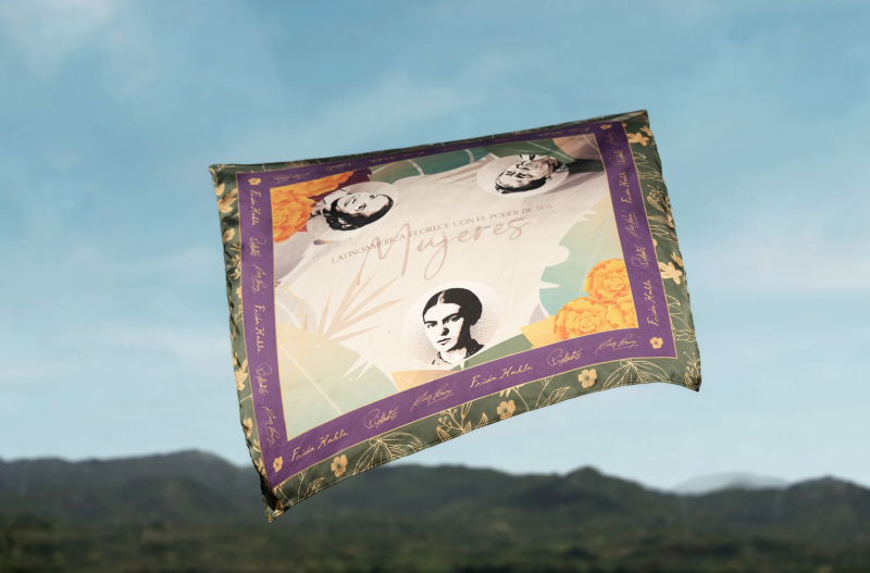 La Pañoleta Latinoamérica surgió desde el amor. Desde el 2019, Nina ha trabajado con textiles narrativos: Estampados inspirados en cartas entre las Hermanas Mirabal, iglesias emblemáticas y monumentos nacionales. Esta vez, su mirada se extendió más allá de las fronteras para destacar a tres mujeres latinoamericanas icónicas: Frida Kahlo, Eva Perón y Rigoberta Menchú.