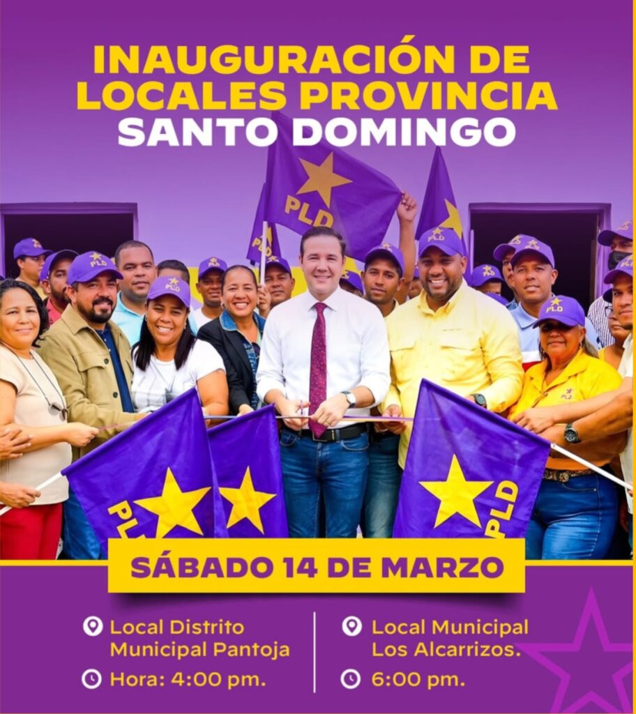 El Partido de la Liberación Dominicana (PLD), programó para este sábado sendos actos inaugurales de locales de esa organización en el municipio Los Alcarrizos y en el distrito municipal, Pantoja, ambos de la provincia Santo Domingo.